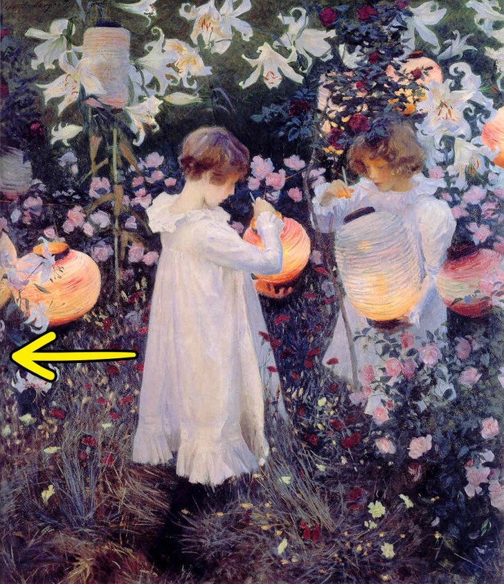 Зараз картина за своєю формою майже квадратна, але так було не завжди. Спочатку з лівого боку залишалося ще понад півметра простору. Сарджент відрізав цю частину, щоб централізувати композицію.