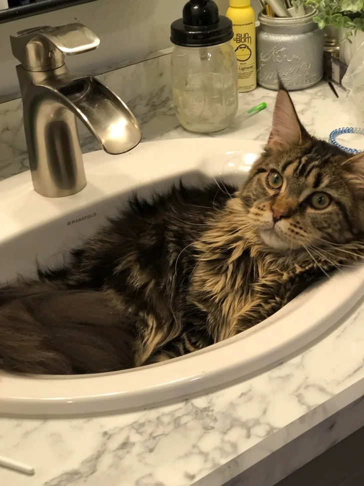«У моєї подруги кішка чомусь просто обожнює спати в раковині».