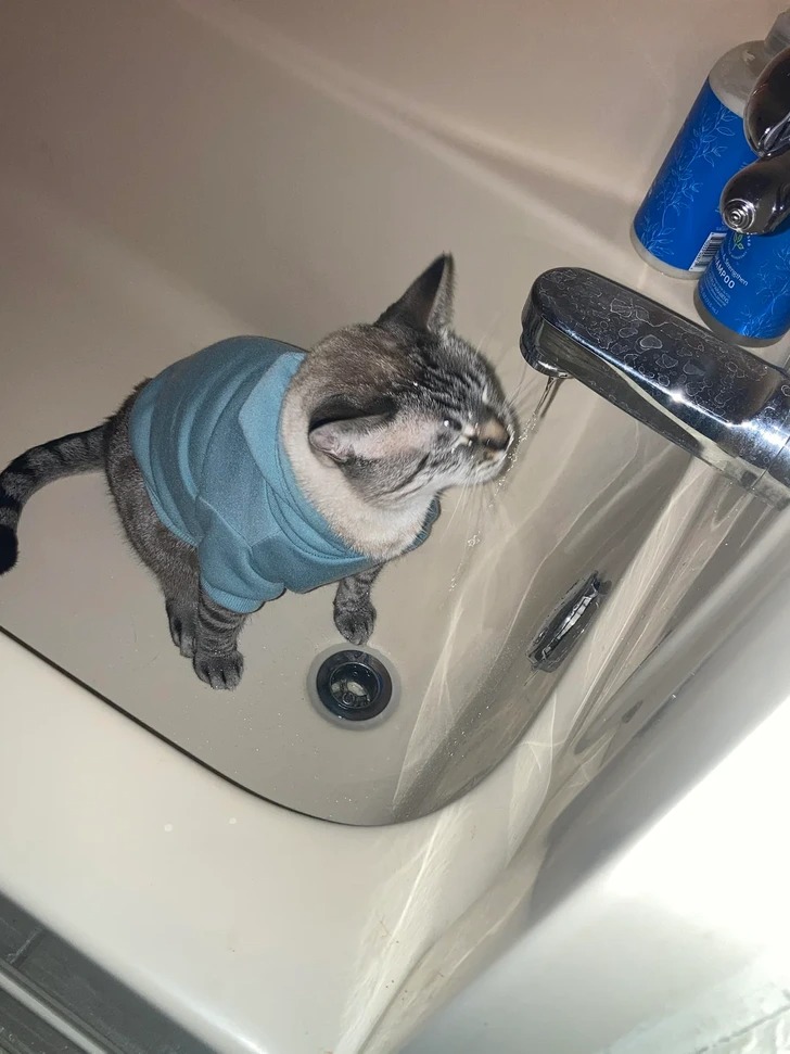 «Мій кіт відмовляється пити зі своєї миски для води і п’є тільки з крана в моїй ванній. Він залазить у ванну і «нявкає», поки я не ввімкну воду. Це нормально?».