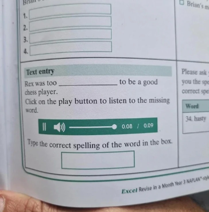 «Натисніть на кнопку, щоб прослухати запис, і впишіть слово, якого не вистачає».