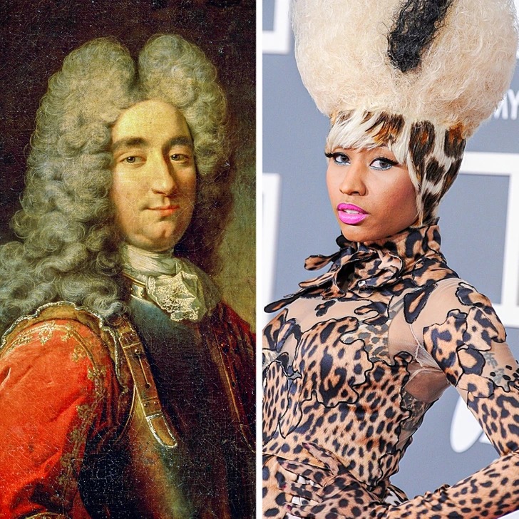 Що цікаво, у XVIII столітті перуки носили виключно чоловіки, а жінки лише робили зачіску, доповнену штучним волоссям. Модники пудрили волосся яскраво-білою пудрою, а модниці – блакитно-сірою.