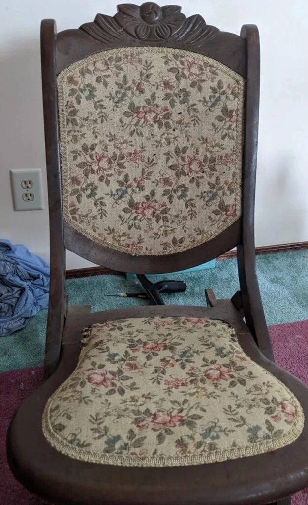 «Я знайшов це акуратне складне крісло-гойдалку у себе вдома. Думаю, що воно приблизно 50-х років»