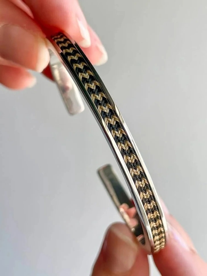 «Браслет із білого золота і волосся двох моїх маленьких дочок. Одна – блондинка, інша – брюнетка»