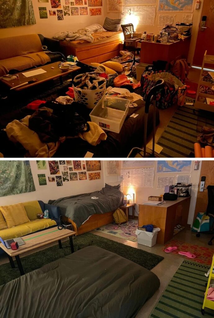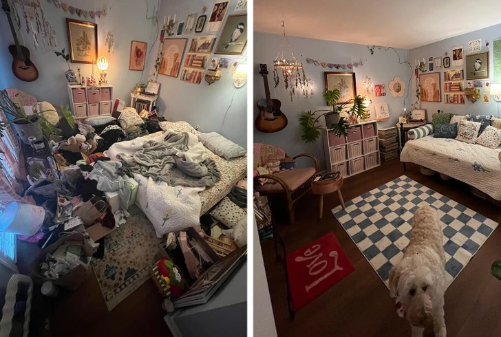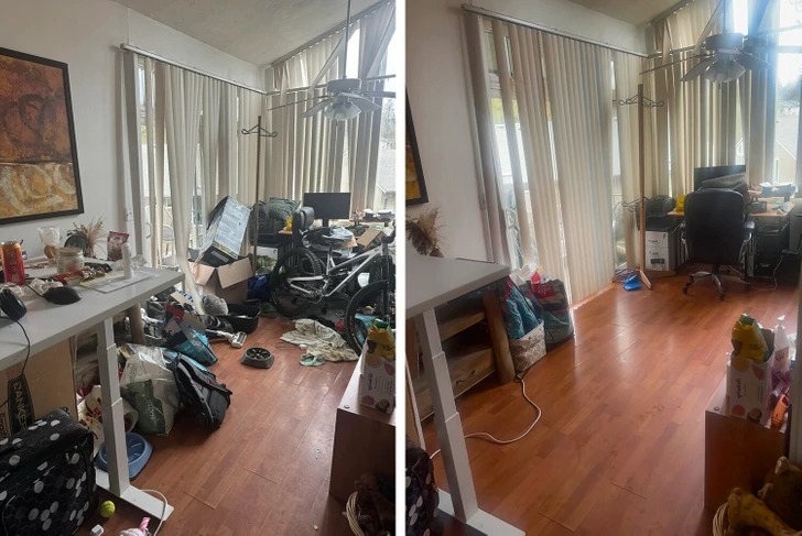 Хто з нас не ховав у поспіху гору речей у шафу, почувши дзвінок гостей у двері? Безлад у домі – привід для сорому для багатьох, але ці сміливці зважилися на відвертий експеримент. Вони виклали в мережу фото своїх квартир до і після прибирання – і різниця між ними вражає. Можливо, саме ці кадри стануть найкращим мотиватором для вашого генерального прибирання. Обережно: після перегляду може виникнути непереборне бажання негайно вимити всю підлогу в будинку!