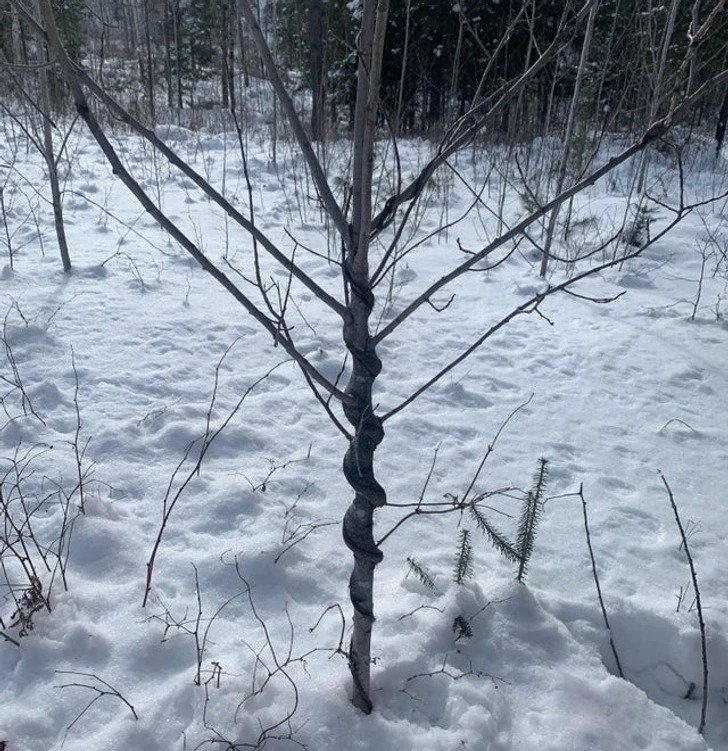 Навколо цього маленького деревця росла виноградна лоза, і дерево зрослося з нею. Тепер здається, ніби змія обвилася навколо дерева