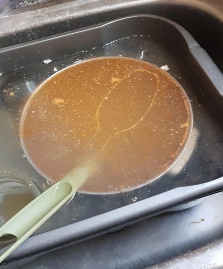 Залишки супу ідеально окреслили контур ложки