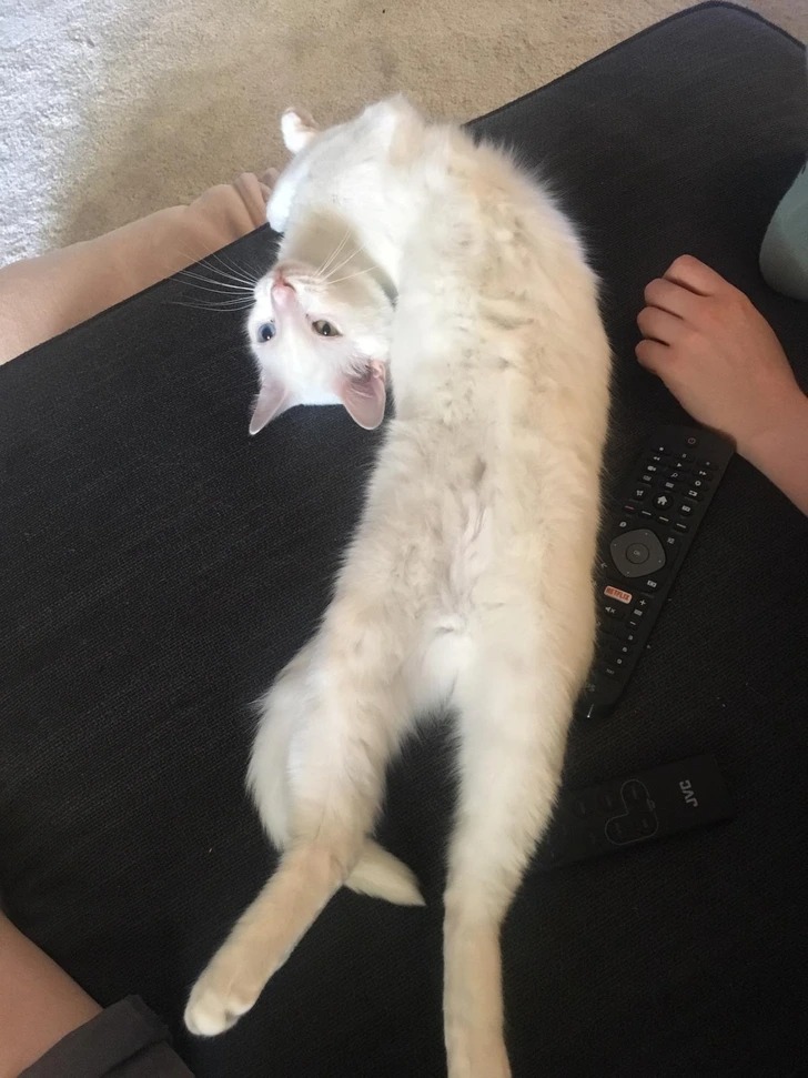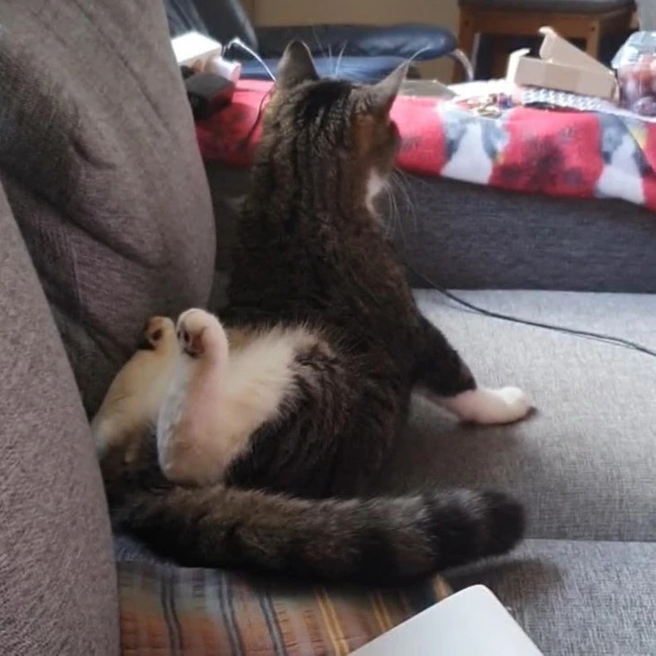 «Застала свою кішку в такій позі, коли прийшла посидіти на дивані»