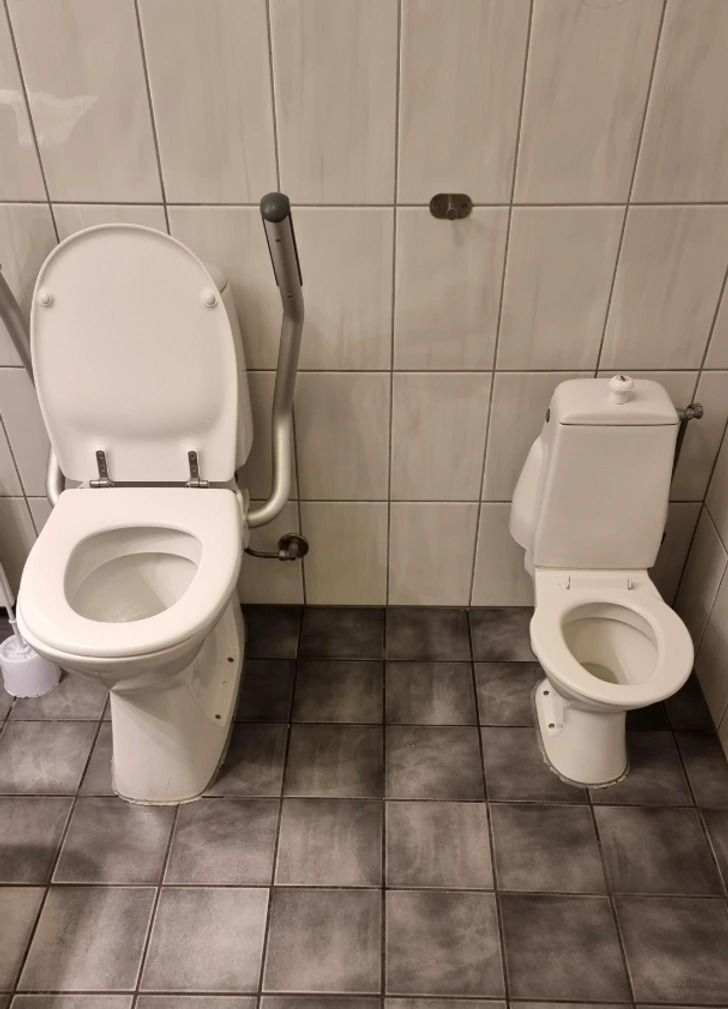 В одному з громадських туалетів Норвегії встановлено два унітази: один — для дорослого, інший — для дитини