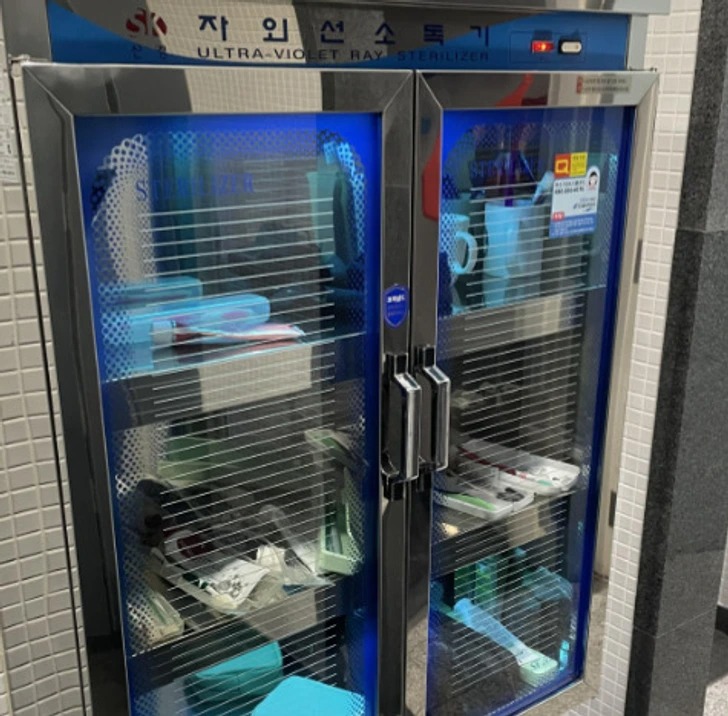 У Сеулі студенти навчаються цілодобово. Тому в публічній бібліотеці є спеціальна шафа, в якій можна продезінфікувати зубну щітку