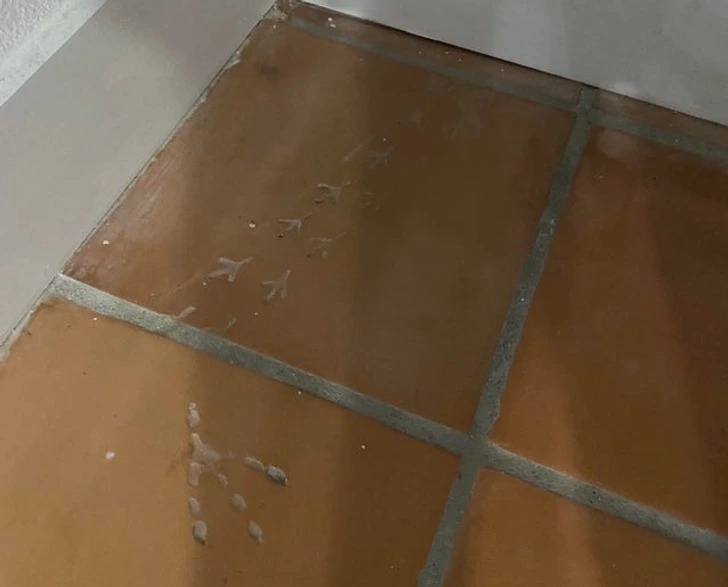 «Тільки що переїхали і виявили в коморі стару плитку, яка традиційно виготовляється вручну і сушиться в полях. Схоже, у цих плиток були відвідувачі»