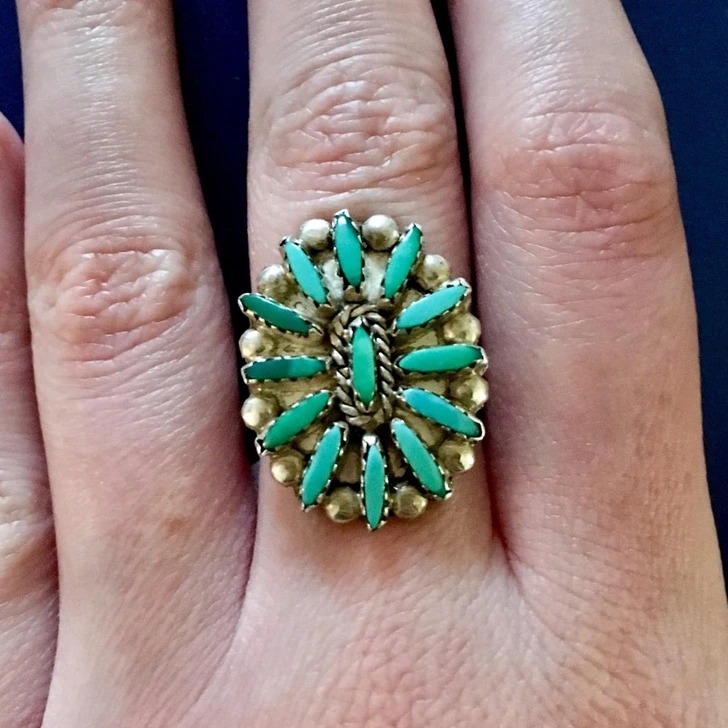 «Знайшла це шикарне кільце ручної роботи зі срібла і бірюзи в моєму улюбленому комісійному магазині»