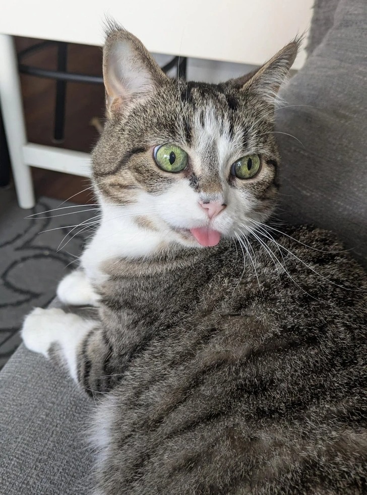 Моя кішка теж так робить. Можна трохи почекати, а потім допомогти їй сховати язик назад. © Either-Safety2402 / Reddit