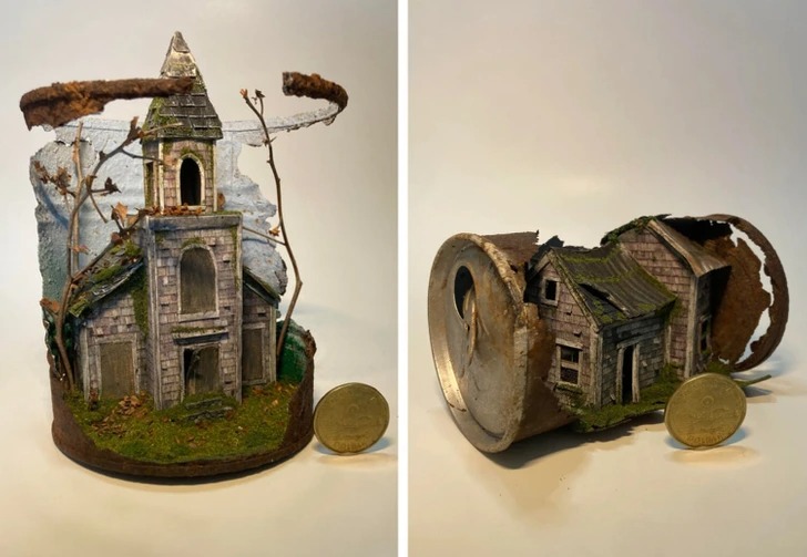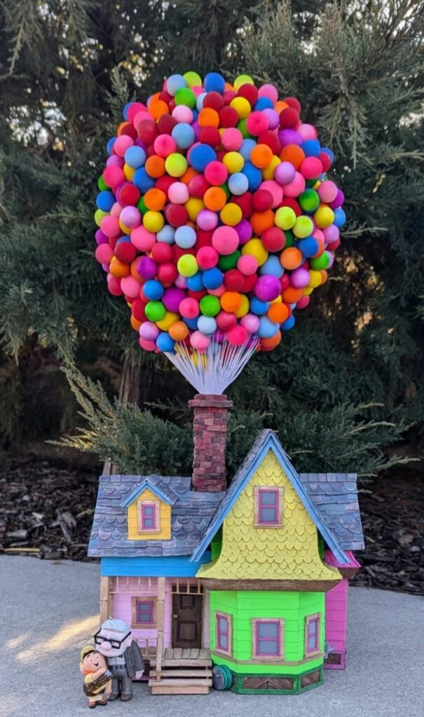 «Я зробила мініатюрну версію будинку з мультфільму „Вгору“. Безліч емоцій, 120 годин роботи, безліч матеріалів, включаючи повітряні кулі — і все готово!»