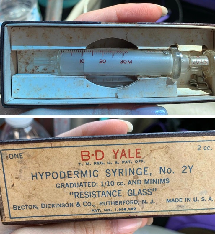 «Старий шприц, який моя сестра знайшла у дідуся з бабусею. Не знаю, в якому році він був зроблений»