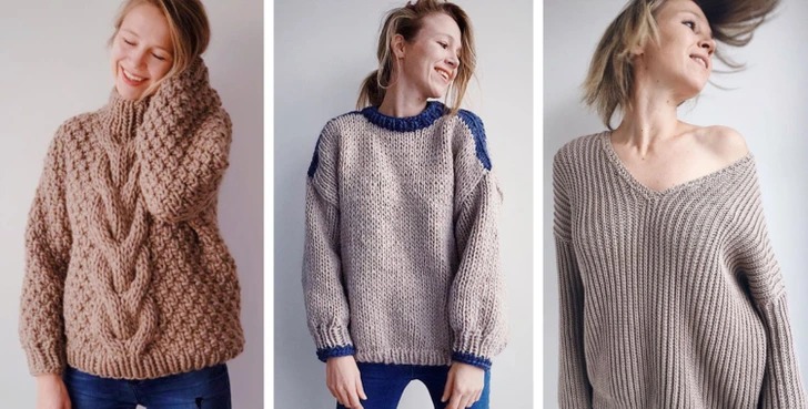Всі 3 предмети одягу в’яжуться з вовняної або трикотажної пряжі і мають довжину до стегон. Відрізнити їх досить просто — за формою вирізу.