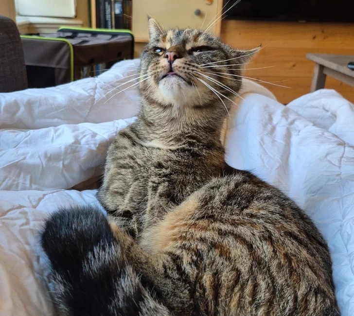 «Іноді прямо посеред вмивання кішка „зависає“ і дивиться в порожнечу з найбезглуздішим виразом морди. Обожнюю цю дивну дівчинку!»