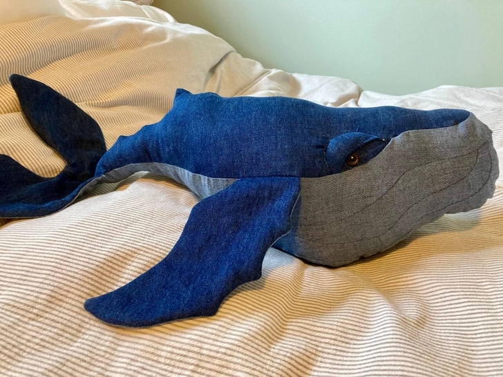 «Ось такий дивний і дивовижний кит у мене вийшов з джинсової тканини»