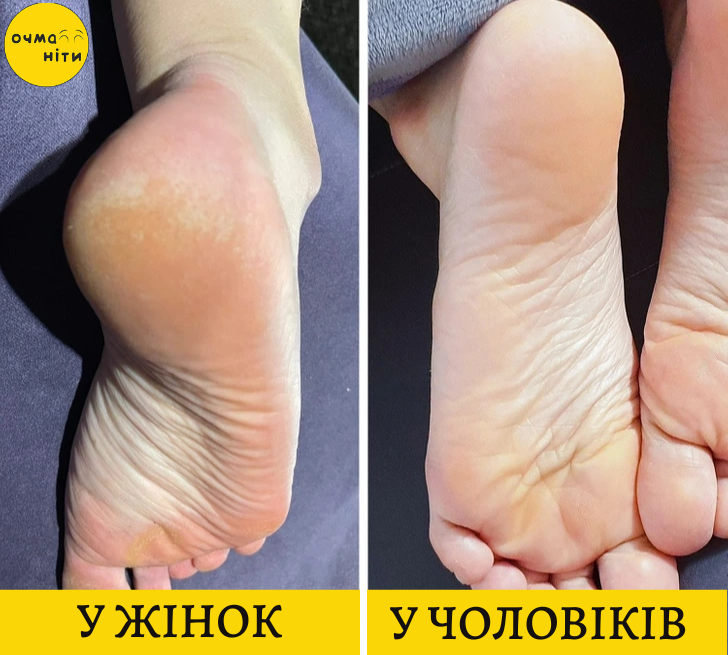 Вчені дослідили фокус-групу і з’ясували, що у жінок шкіра була значно більш зволоженою в зоні декольте, а також на руках. І тільки шкіра на п’ятах виявилася сухішою! Так що за рівних умов у чоловіків п’яти будуть більш гладкими.