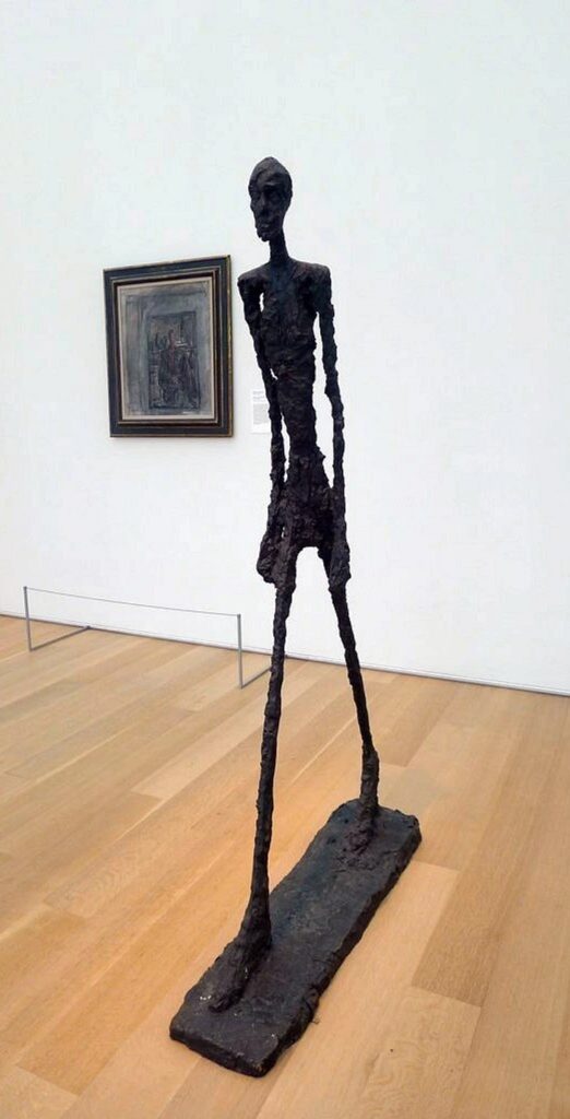 Джакометті — один з найвидатніших скульпторів XX століття. Найбільше він відомий своїми бронзовими скульптурами у вигляді високих худих людських фігур. Альберто створив їх під враженнями від людей, які вічно кудись поспішають у великому місті.