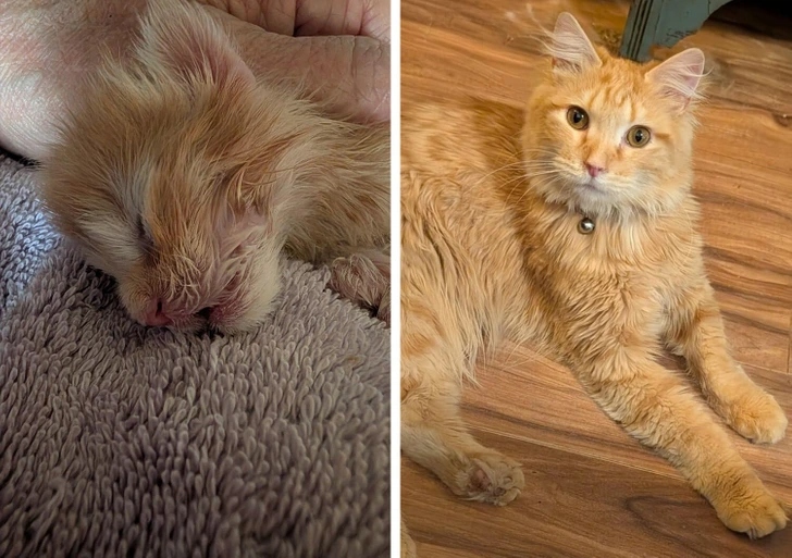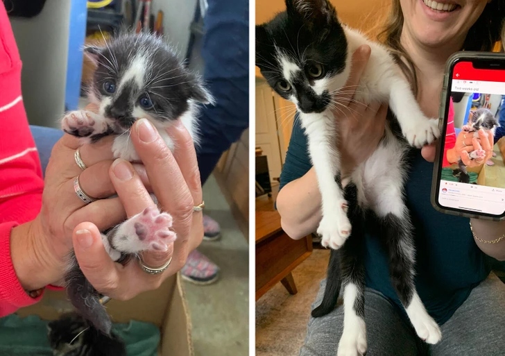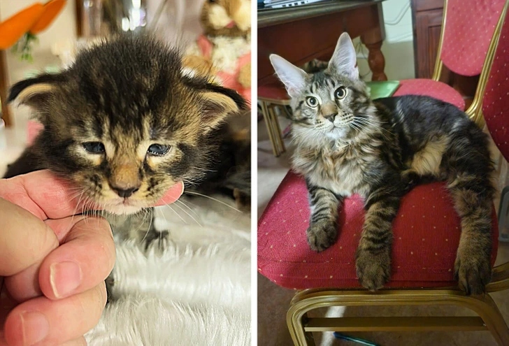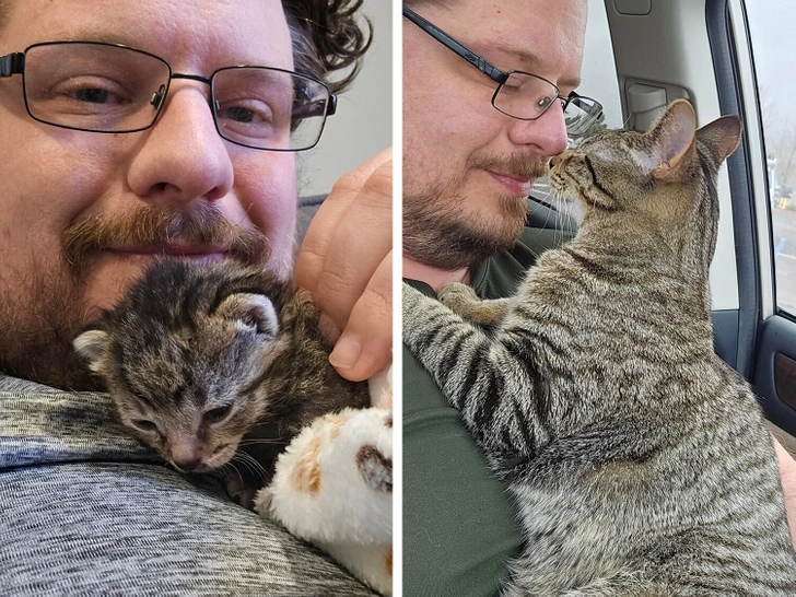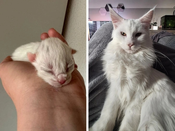 «На першому фото малюку всього 2 тижні, а на другому — вже 13. Вимахав у котяру»