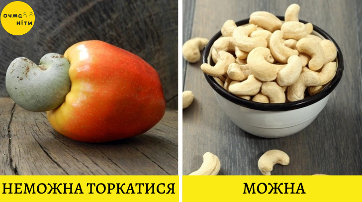 Коли кеш’ю росте, то він покритий особливою оболонкою, яка несе в собі небезпеку. У ній міститься токсична олія урушіол. Вона може викликати свербіж, пухирі і шкірний висип. Тому, якщо десь в теплих країнах побачите кеш’ю, що росте, торкатися його ні в якому разі не можна. Убезпечити горіх допомагає просте очищення і обсмажування.