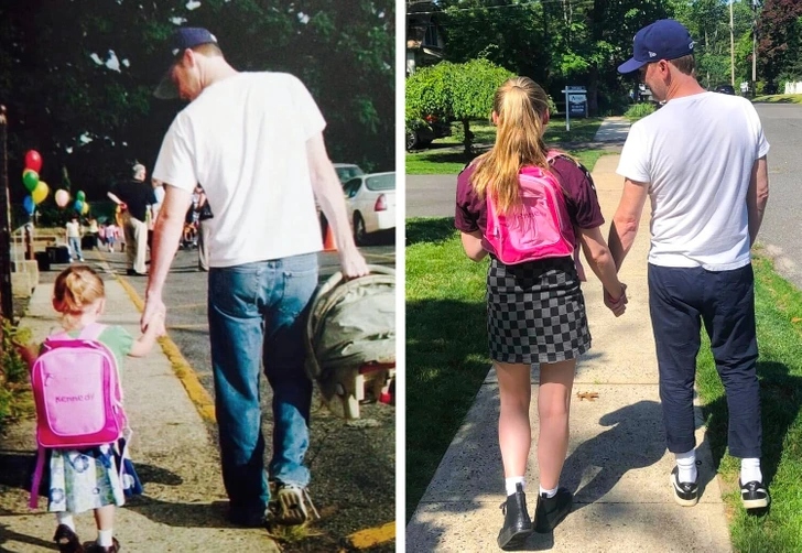 «Перший і останній день моєї дочки в школі. До речі, рюкзак і бейсболка на нас ті самі»