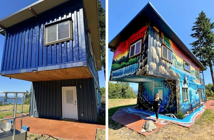 «До і після того, як я розмалювала цей будинок з контейнерів»