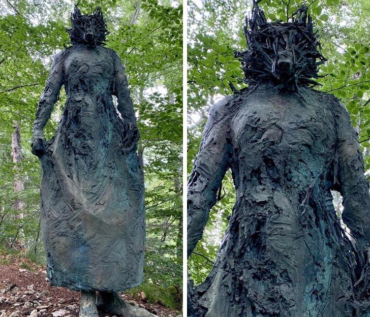 «Ця статуя вовка-перевертня стоїть прямо посеред лісу»