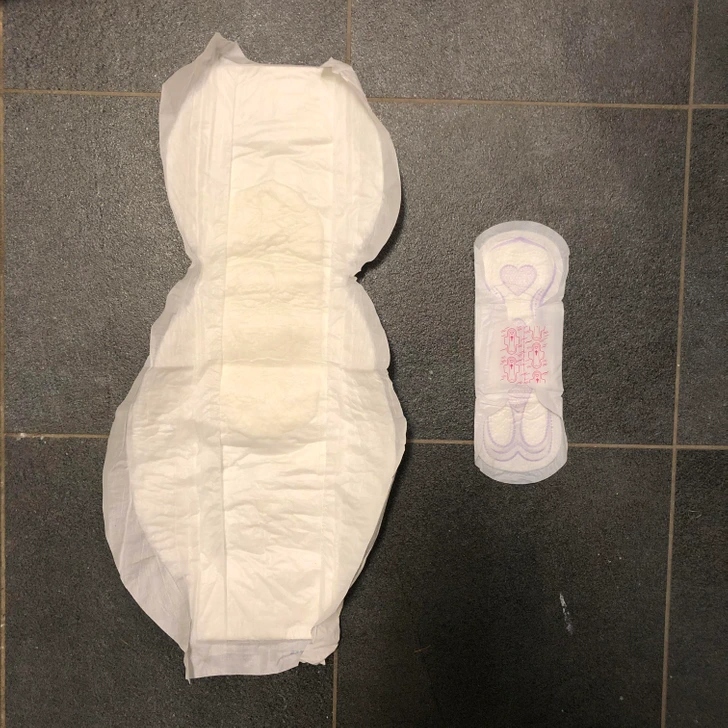 Зліва — післяпологова прокладка, а праворуч — звичайна