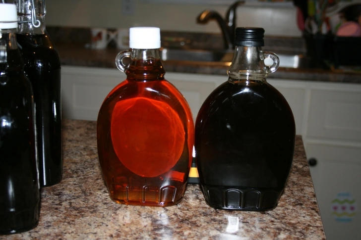 Подивіться, яка різниця в кольорі між магазинним кленовим сиропом (ліворуч) і домашнім (праворуч)