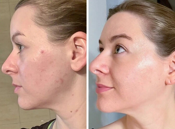 «Я почала використовувати зволожувальний крем, крем для очей, вітамін С і сонцезахисний крем. Також почала пити протизаплідні — думаю, вони теж зіграли свою роль у боротьбі з акне. Ось останні зміни. Як би мені не хотілося це визнавати, але 30 днів контролю за харчуванням реально поліпшили мою шкіру. Місяць без цукру та рафінованих продуктів, молочні продукти їм тільки на сніданок».