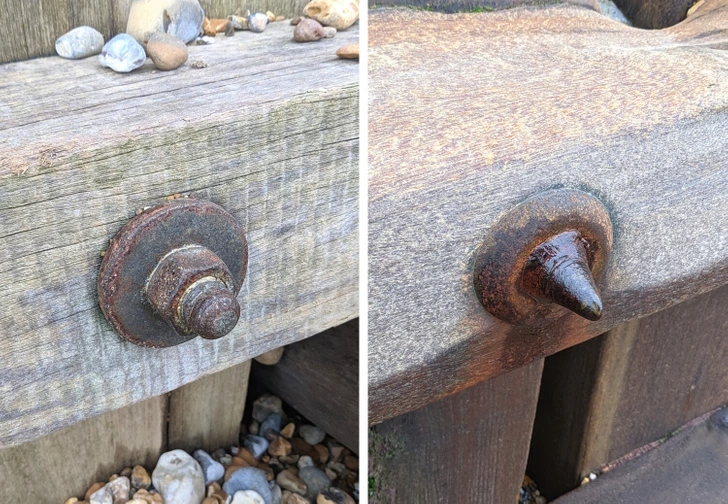 Ліворуч на фото гайка і болт, які знаходяться далеко від моря, а праворуч — близько до нього