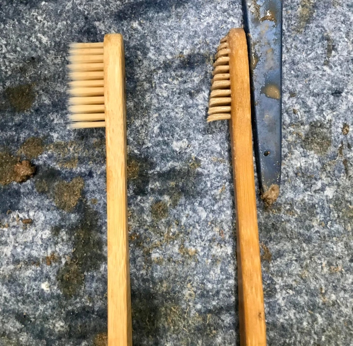Зліва — нова щітка, а щіткою праворуч цілий день чистили кераміку, знайдену під час розкопок