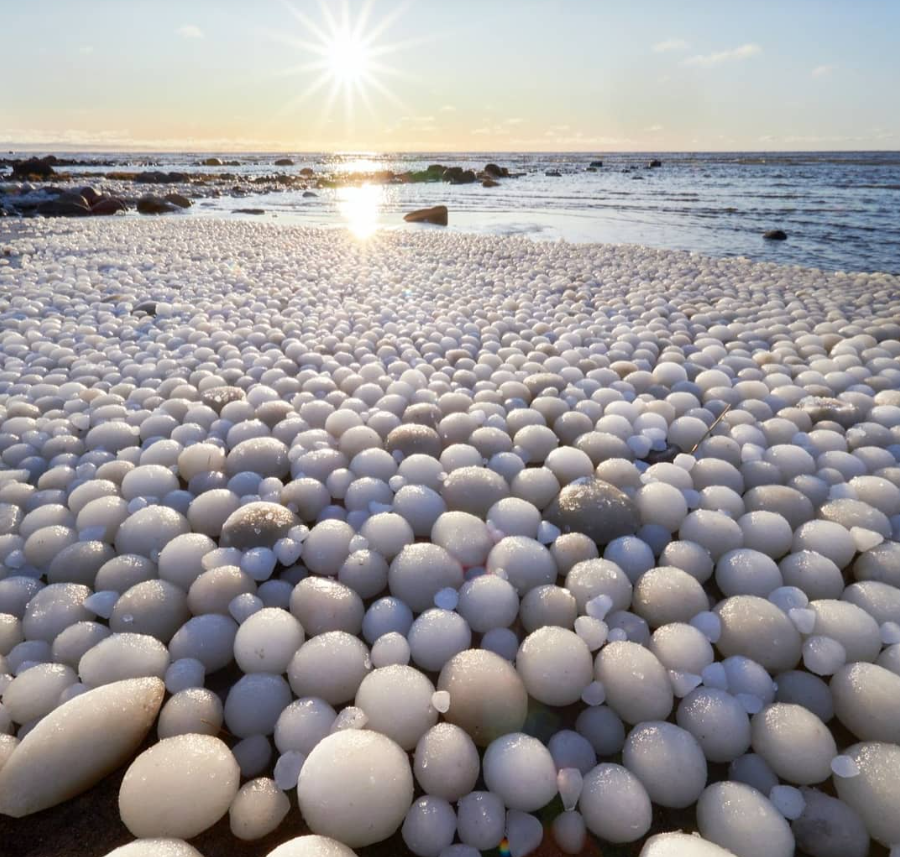 На півночі Фінляндії іноді трапляється рідкісне явище, вода і вітер створюють крижані яйця
