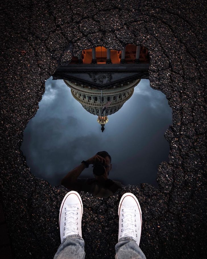 Ця калюжа виглядає як портал в інший світ, звідки тебе фотографує незнайомець