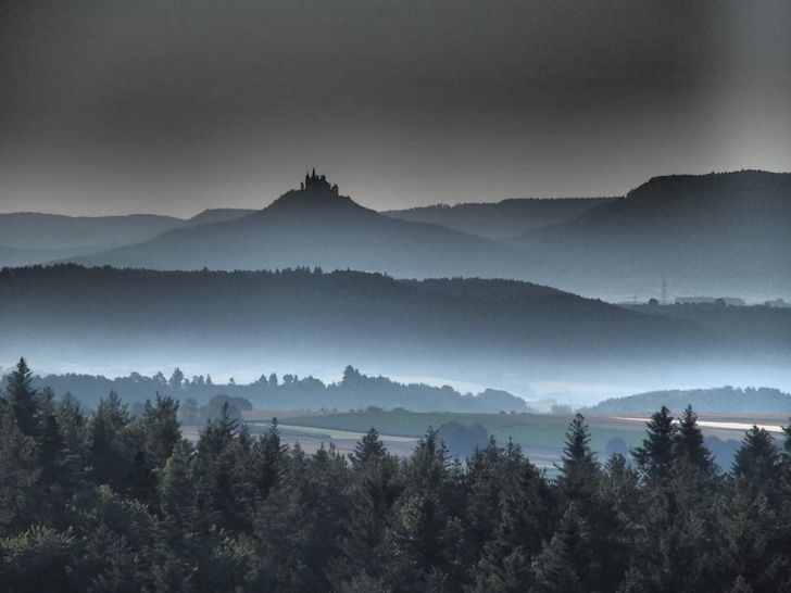 Туманний день в Німеччині. Вид на замок Гогенцоллерн