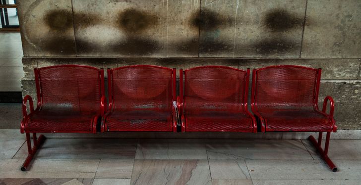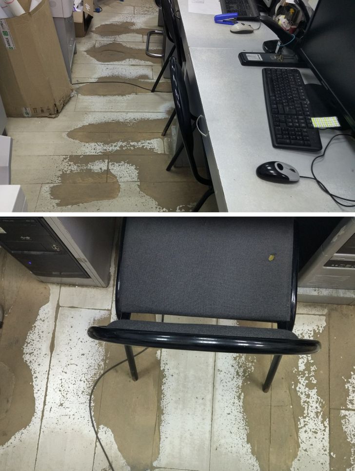 Слід на плитці, залишений перукарем за довгі роки