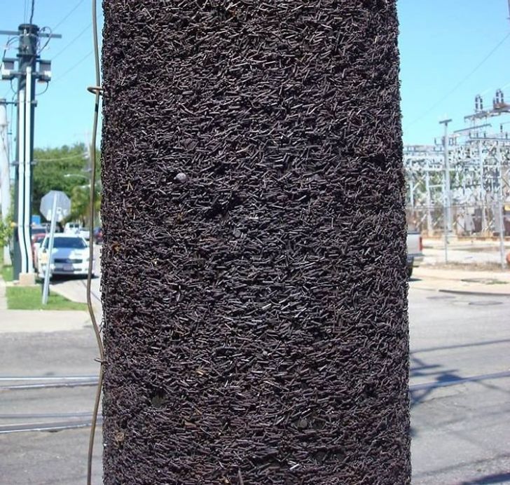На цей стовп 40 років степлером кріпили афіші. Тепер на ньому немає “живого” місця!