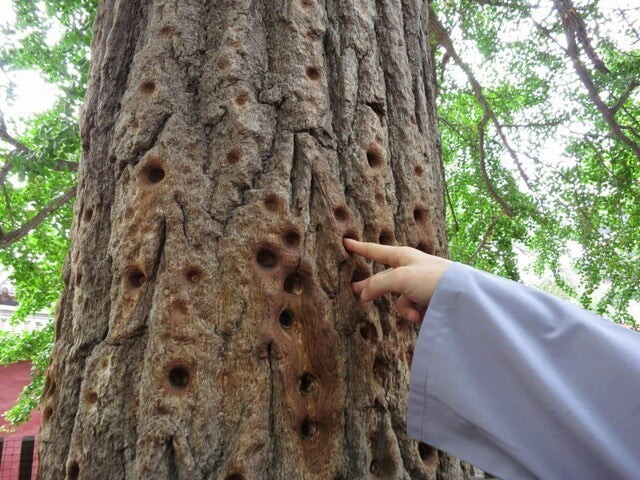 16. Ченці Шаолінь тренували пальці в корі дерева. Ці сліди залишилися від них