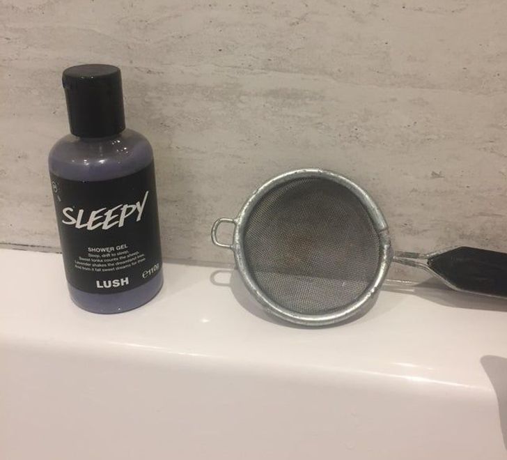 «Завжди тримайте у ванній чайне ситечко. Воно може замінити бомбочку для ванни, якщо через нього наливати звичайний гель для душу »