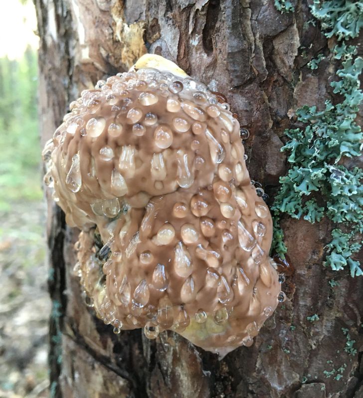 «Знайшов це в шведському лісі. Воно висіло на висоті 1 метра від землі, за розміром сантиметрів 20. Тверде на дотик, але, якщо постукати, з нього починає капати рідина »