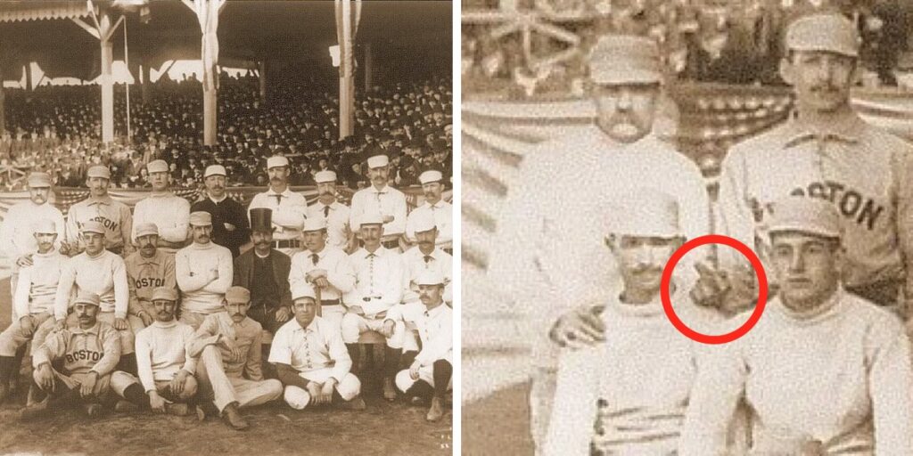 Групове фото бейсбольної команди Boston Beaneaters, зроблене в 1886 році. Особливістю цієї історичної фотографії є жест пітчера Чарльза Редборна (верхній ряд, перший зліва). Редборн першим увічнив свій піднятий середній палець на фотографії.