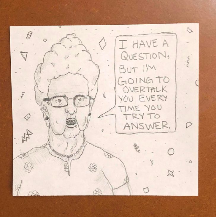 «Працюю в кол-центрі. Коли мені дзвонять грубіяни, то я уявляю, як вони виглядають, і малюю їх. Це Лоррейн, яка дзвонила сьогодні »