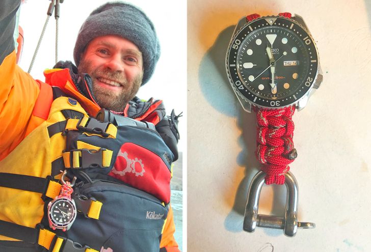 «Я працюю в Арктиці й Антарктиці і не можу носити годинник на руці через товстий шар одягу. Тому я ношу його таким чином »