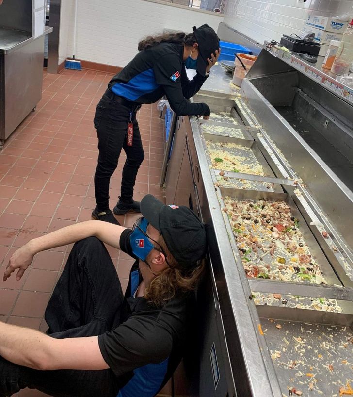 Двоє працівників піцерії після своєї зміни. Всю їжу продали за 4 години