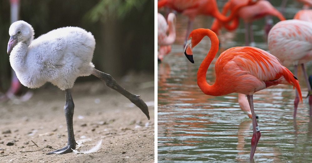 Фламінго не відстає від інших в цій добірці по розбіжностям між пташенятами і дорослими птахами