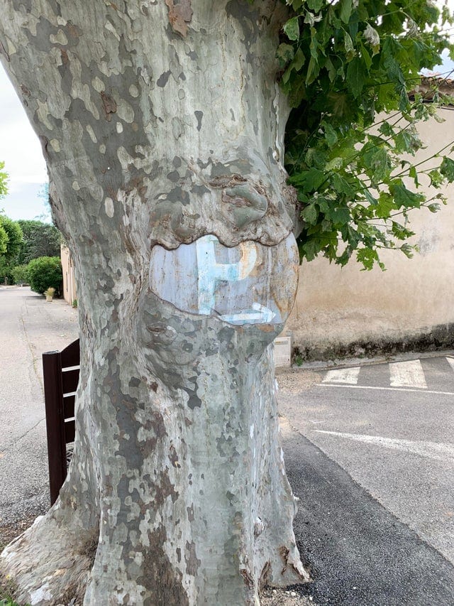 Це дерево виросло під шаром фарби