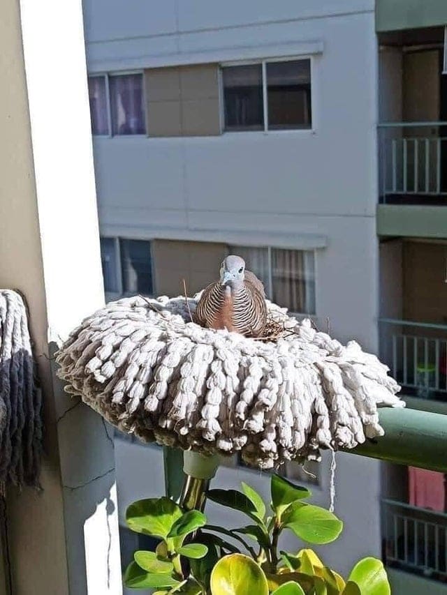 Птах вирішив звити гніздо в швабрі