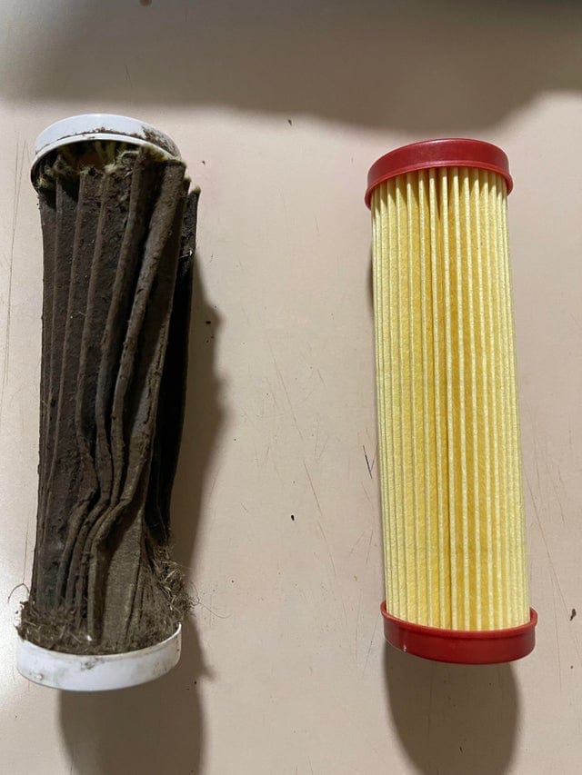 Повітряний фільтр, який я тільки що вийняв із газонокосарки, і той, на який я його замінив