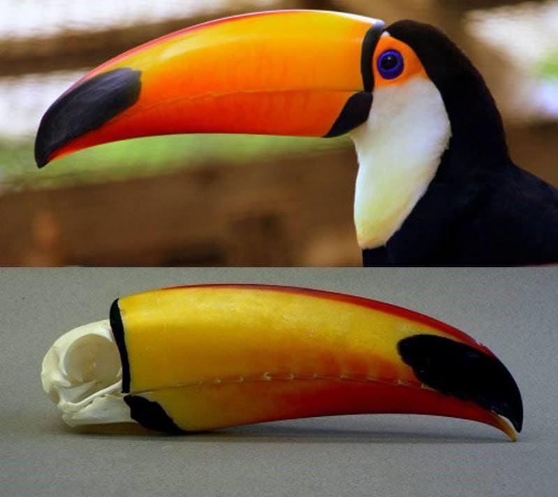 Дзьоб тукана в порівнянні з його черепом
